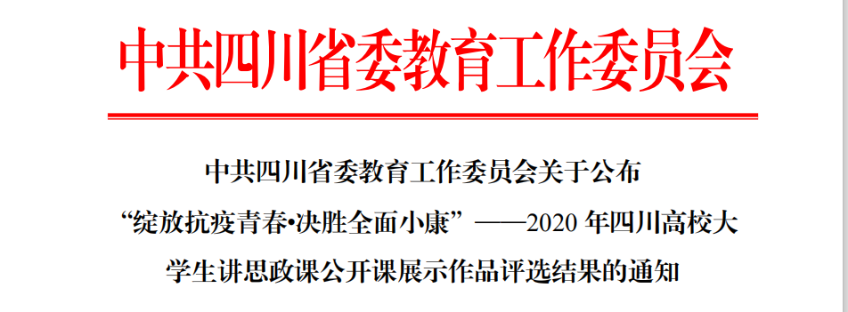 公司寇壤、马恩甫、李瑶、黄楠老师指导员工参加“绽放抗疫青春·决胜全面小康”——2020年四川高校老员工讲思政课公开课荣获三等奖。