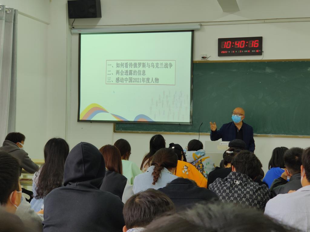 2022年4月7日星期四上午10:00,威廉williamhill体育副经理何仕元教授在安州校区博雅楼302作了题为“正确认识我国面临的时局”的专题讲座。