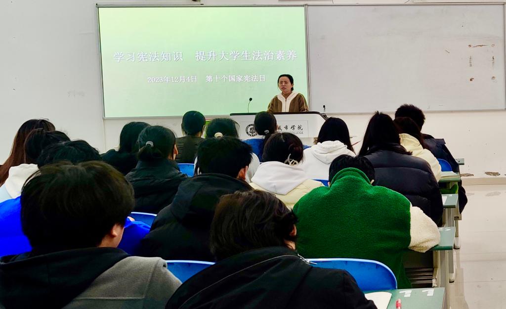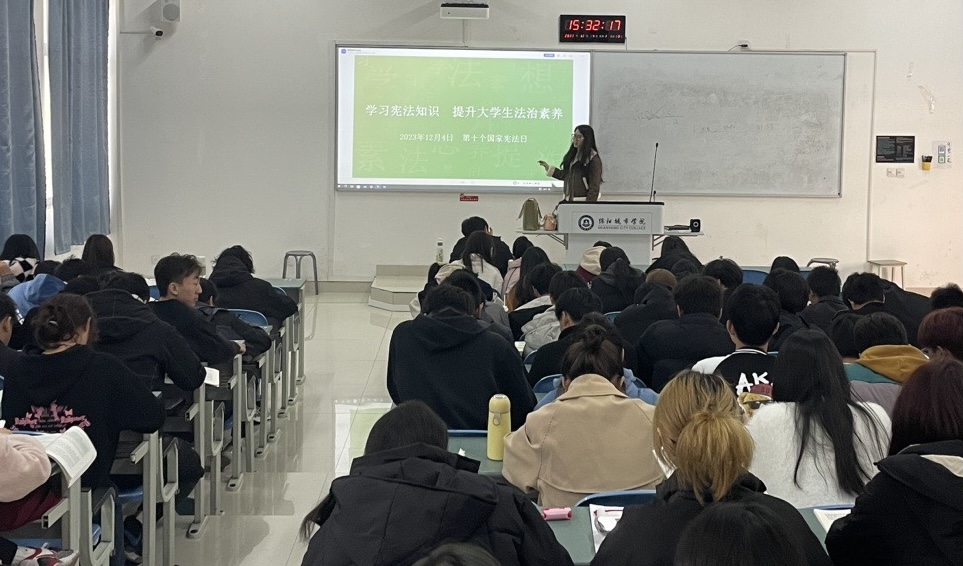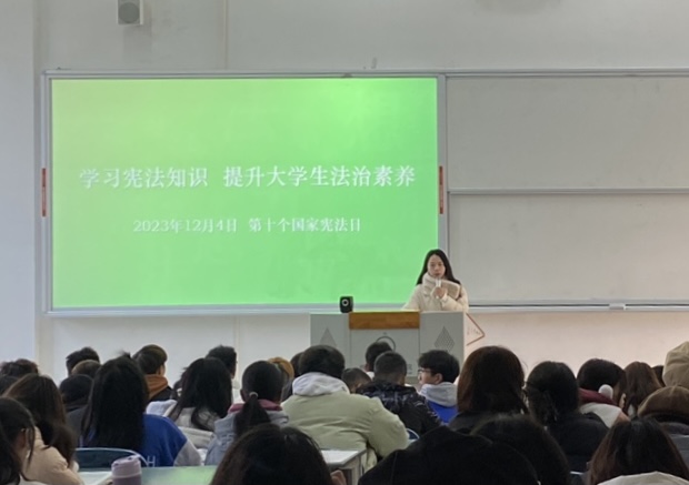 在全面依法治国,建设法治中国的进程中,首先要坚持依宪治国。为深入贯彻习近平法治思想,不断提高老员工法治素养,提高老员工尊法学法守法用法的自觉。2023年12月4日,第十个宪法日里,威廉希尔威廉williamhill体育全体教师在思政课堂上开展宪法知识宣传活动,通过宪法宣讲、宪法知识竞答等方式进行,对员工进行宪法教育。