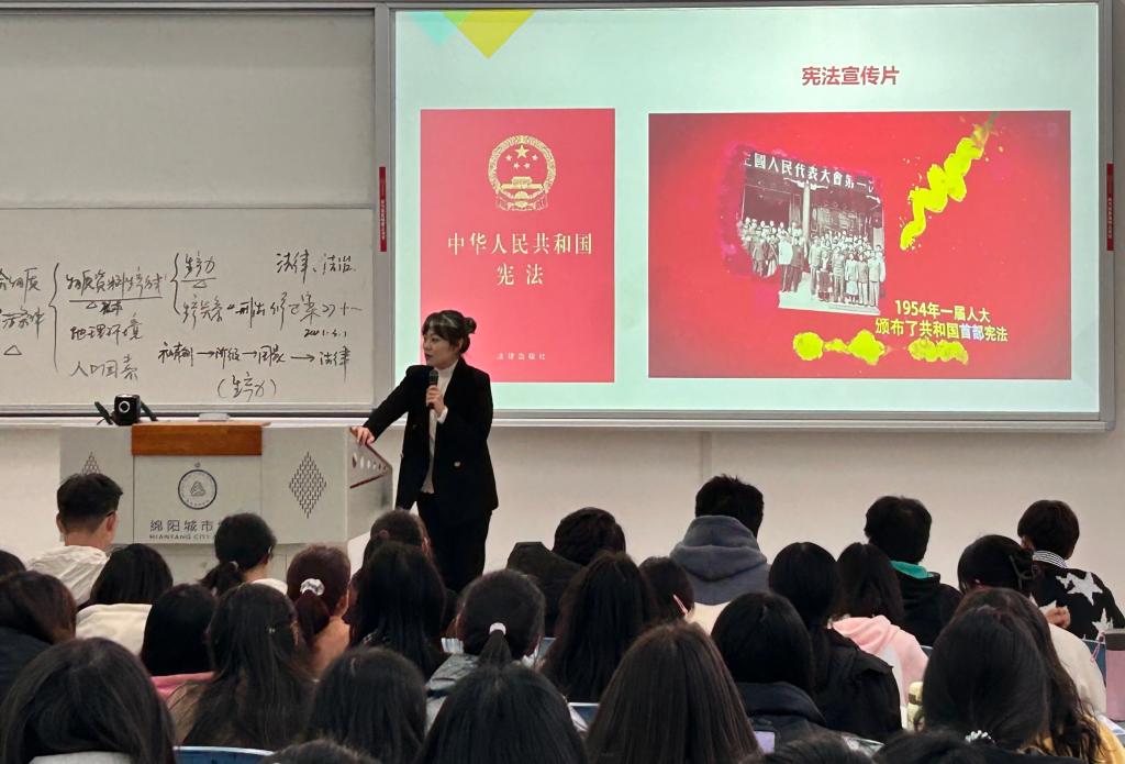 在课堂上,教师们将丰富多彩的活动与宪法知识相结合,寓教于乐的同时也不失法治知识的理论性和宪法知识的权威性,生动形象的向同学们解释了从五四宪法到八二宪法,我国宪法的不平凡建设历程;国家宪法日的由来;以及宪法的基本原则和宪法法律所规定的公民的法律权利和义务。