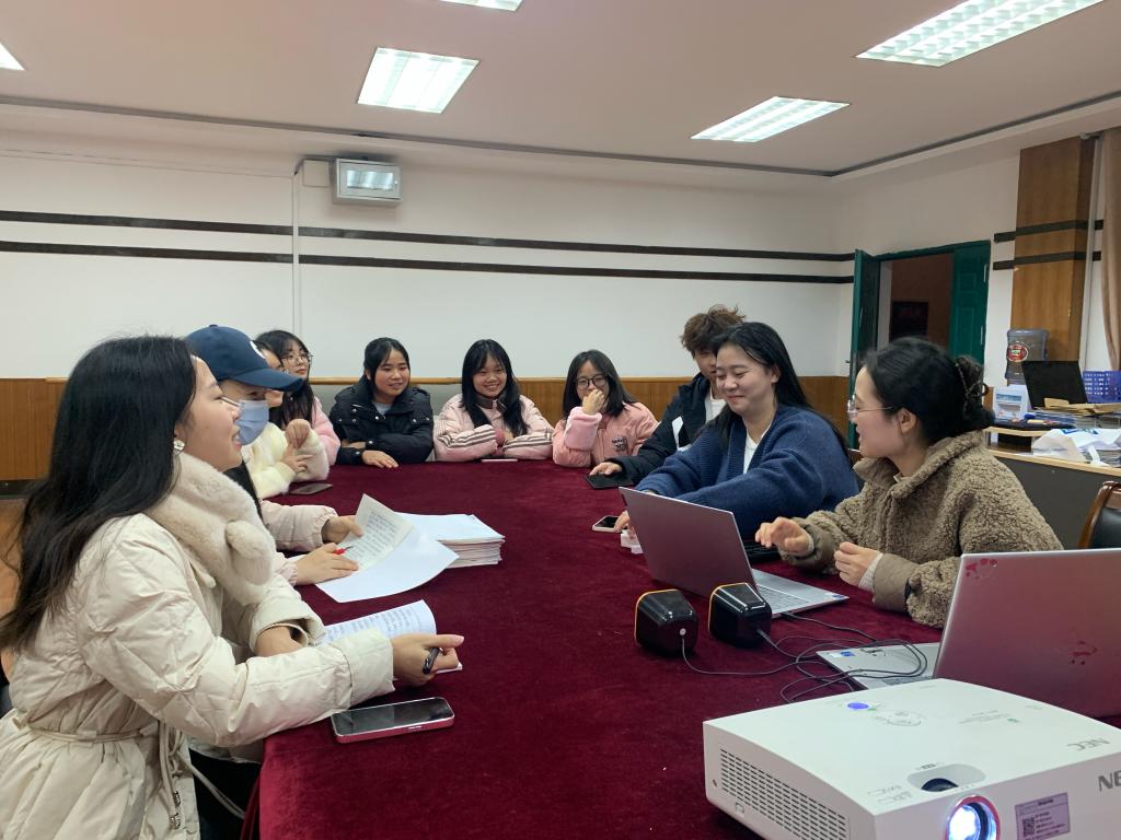 2023年12月5日,威廉williamhill体育《思想道德与法治》课程组教师冯韵、刘萍、陈梦作为指导教师,在博艺楼204与获得本学期思政课微电影一等奖的小组成员们共同讨论作品——《改革春风吹满地,同学少年乘风起》中的修改细节。