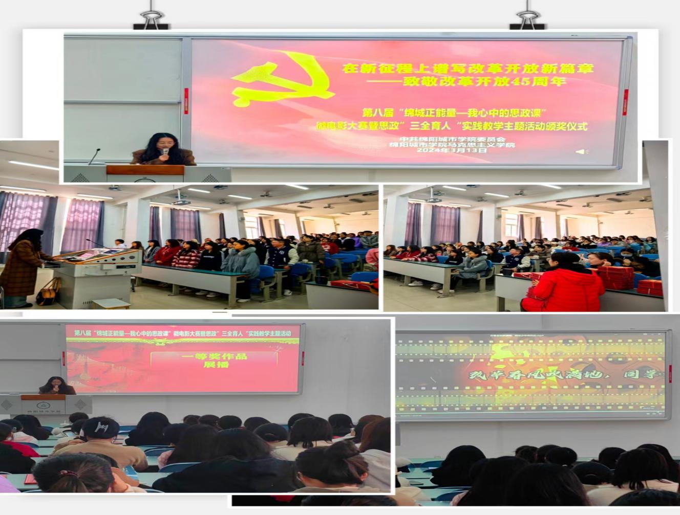 2024年3月13日,在改革开放45周年的辉煌背景下,威廉williamhill体育在游仙校区隆重举行了第八届“绵城正能量-我心中的思政课”微电影大赛暨思政“三全育人”实践教学主题活动颁奖仪式。本次活动得到了公司领导的高度重视和大力支持,游仙校区马院副经理李瑶教授、教学中心及办公室主任黄楠教授及公司教师代表出席了颁奖仪式,与获奖员工共同庆祝这一盛事。这次活动不仅是对员工创新精神的表彰,更是对威廉williamhill体育实践教学新模式改革的一次重要展示。