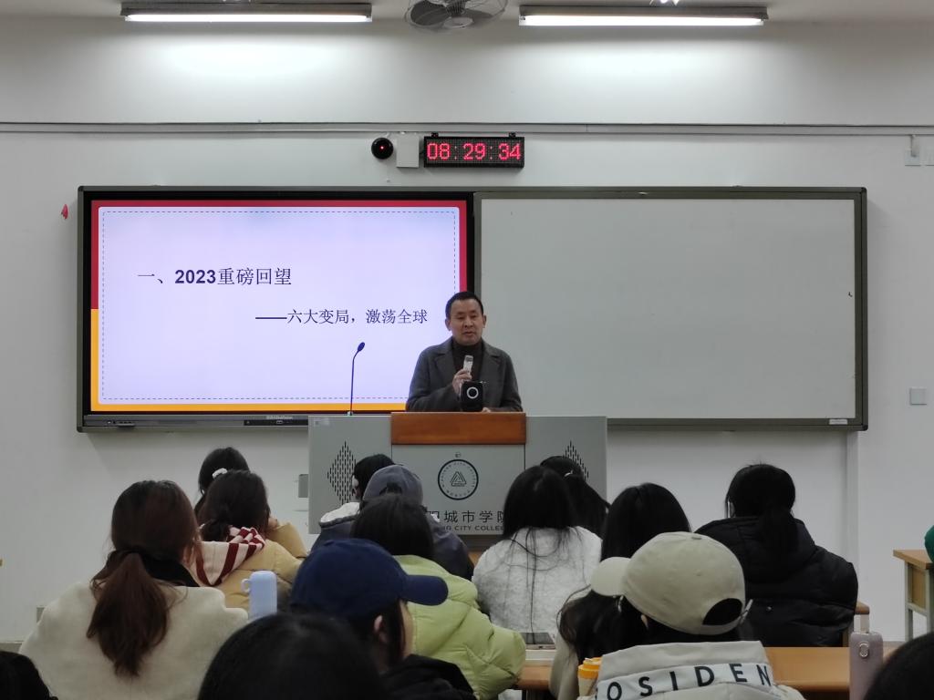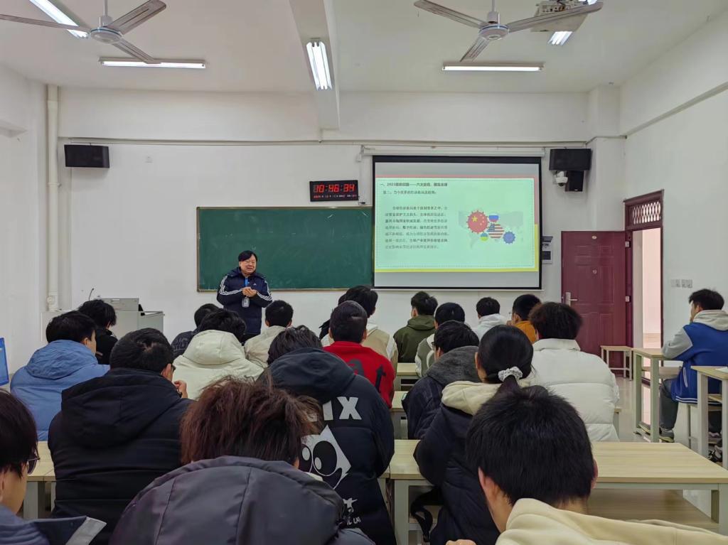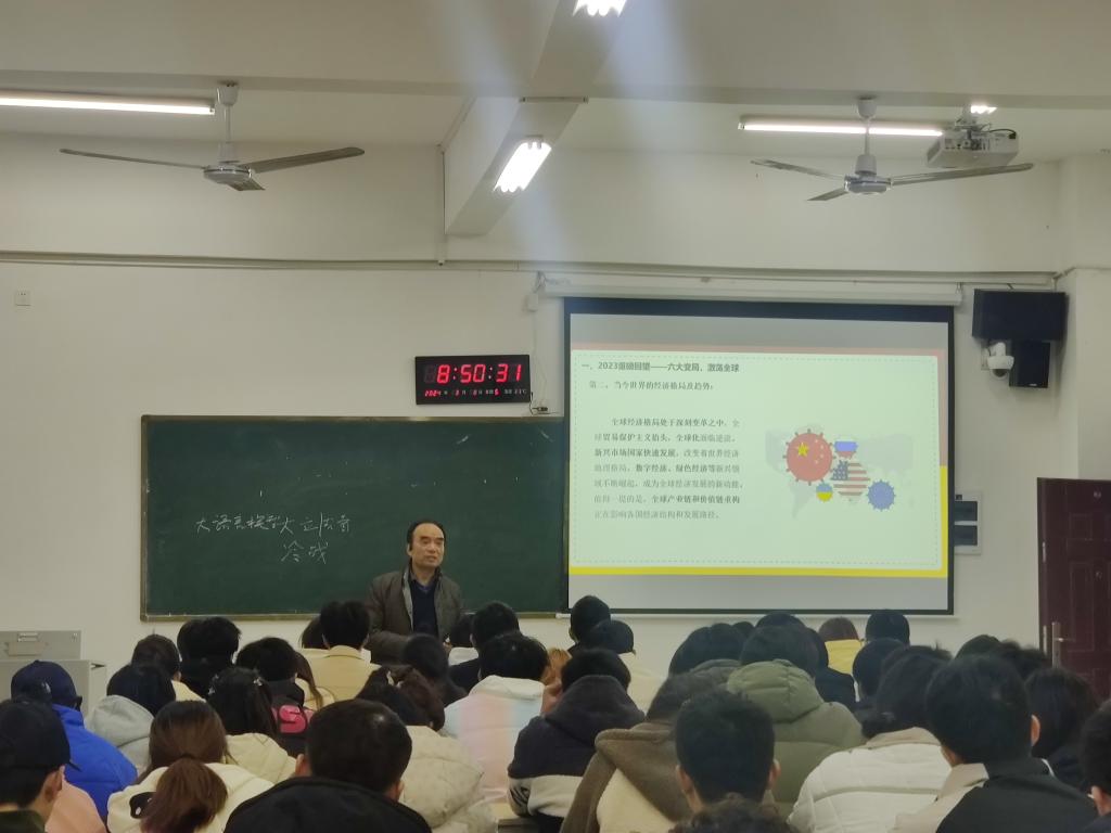 董事长徐鹏在开学第一课上通过对2023年的重磅回望,带领同学们关注2023年国际国内发生的重大事件,从而形成对“全球六大变局”的宏观认识。授课过程中,他结合自己丰富的阅历、广阔的视野为同学们深刻解读“世界百年未有之大变局加速演进”的历史的潮流,以敏锐的观察力和全面的分析能力,鼓励同学们在这个变幻莫测的时代,敢于担当、敢于迎难而上,在变局中抓住机遇,迎接挑战,实现自己的人生价值。丰富的案例、精彩的讲解、透彻的分析,为迈进新学期的同学们注入了巨大的动力。