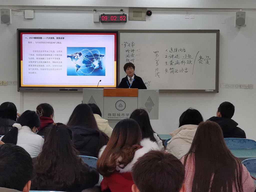 其他校领导分别为不同公司员工讲授“开学思政第一课”,在课上,领导们主要从“2023年国际国内六大变局”,“新时代绵城学子应该怎么做”两个方面进行了讲解,在课程最后,校领导们勉励广大青年牢记习近平总书记的谆谆教诲和殷切期望,将爱国情怀转化为内生动力,履行好中华文化传承者的使命,践行不负祖国、不负人民的誓言,踔厉奋发、笃行不怠,为建设“健康中国”注入青春活力,为实现中华民族伟大复兴贡献磅礴力量!