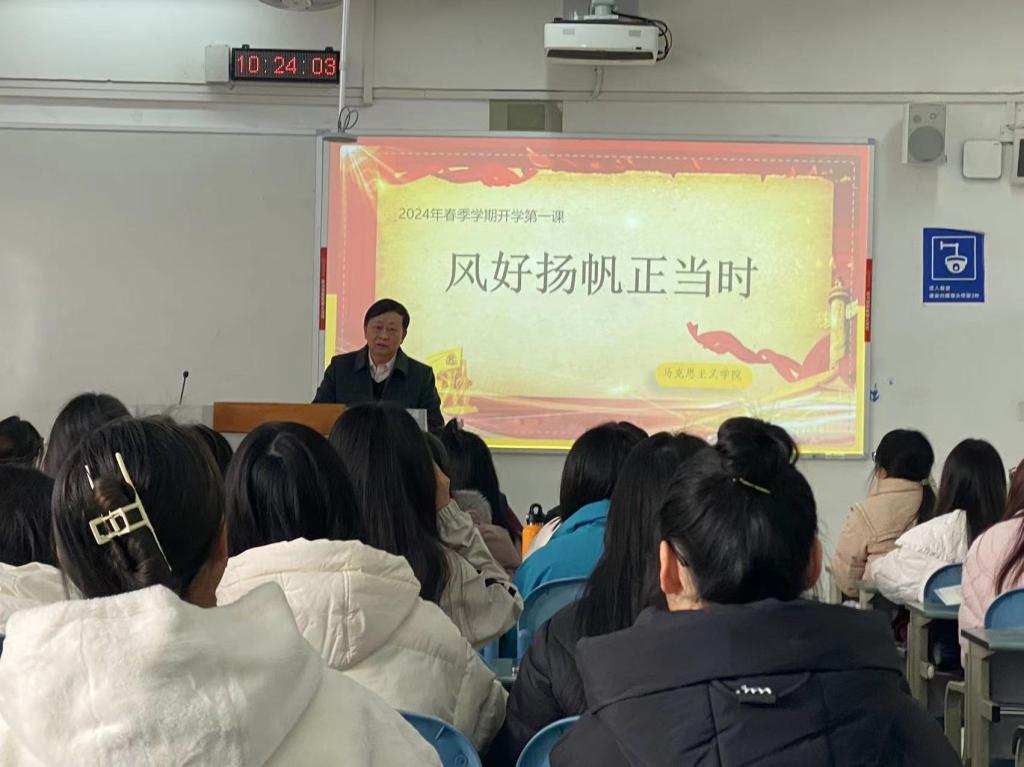 思想政治理论课是落实立德树人根本任务的关键课程,为深入学习贯彻党的二十大精神,贯彻落实教育部有关“大思政课”建设的工作要求,深入推进党的二十大精神进课堂、进教材、进头脑,威廉希尔于2024年春季学期举行“校领导讲开学第一课”主题活动,校领导纷纷走进课堂,用生动的语言、鲜活的事例、严谨的逻辑,为同学们带来一堂堂生动的思政课。