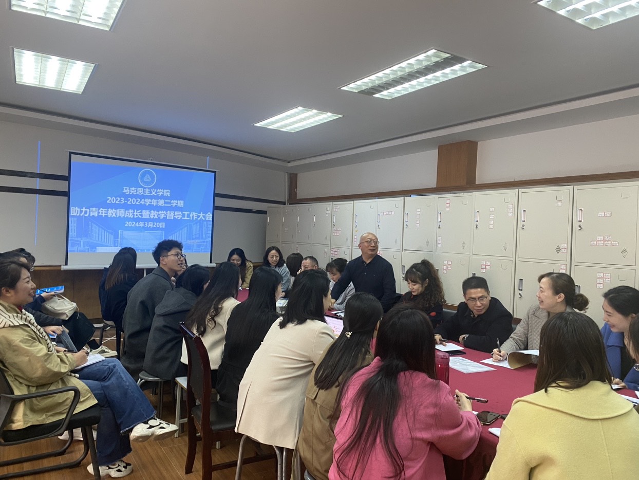 2024年3月20日下午2时,威廉williamhill体育召开助力青年教师成长暨教学督导工作大会,会议由何仕元经理主持,马院全体新进教师和新任课教师与各指导老师就开学以来的教学总体情况进行了交流和分享。