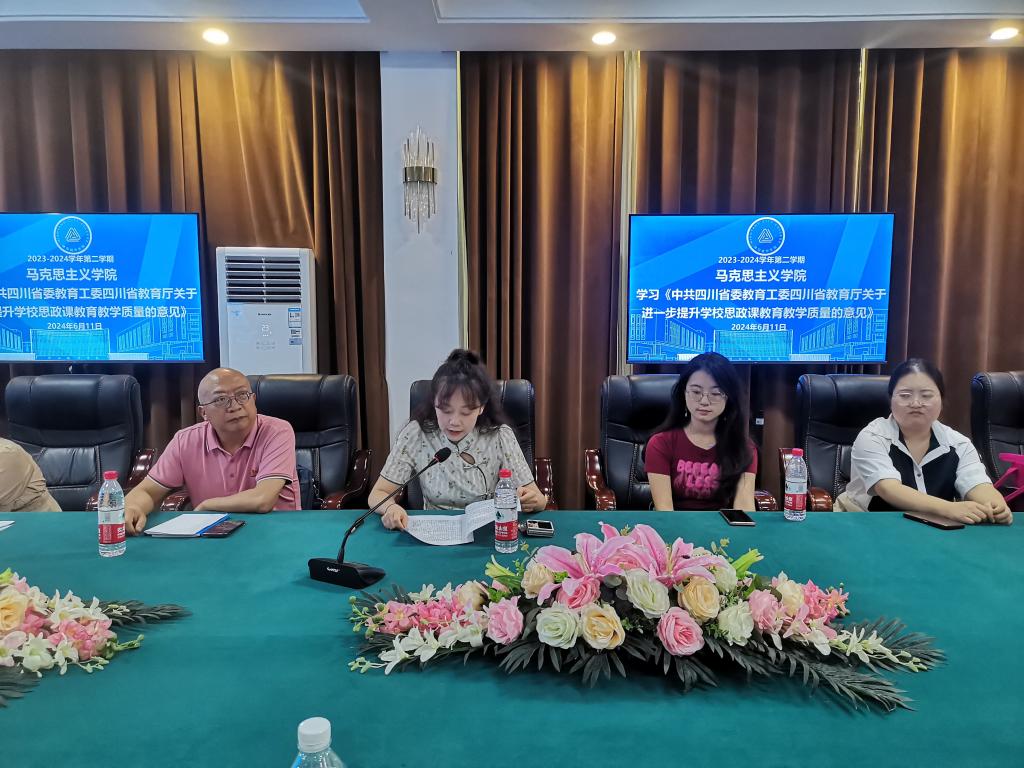 为全面深入推进公司思政课建设,助推公司高质量发展,2024年6月11日下午,威廉williamhill体育开展《中共四川省委教育工委四川省教育厅关于进一步提升公司思政课公司产品质量的意见》学习会议。会议由威廉williamhill体育经理何仕元教授主持,公司全体教师到场参会。