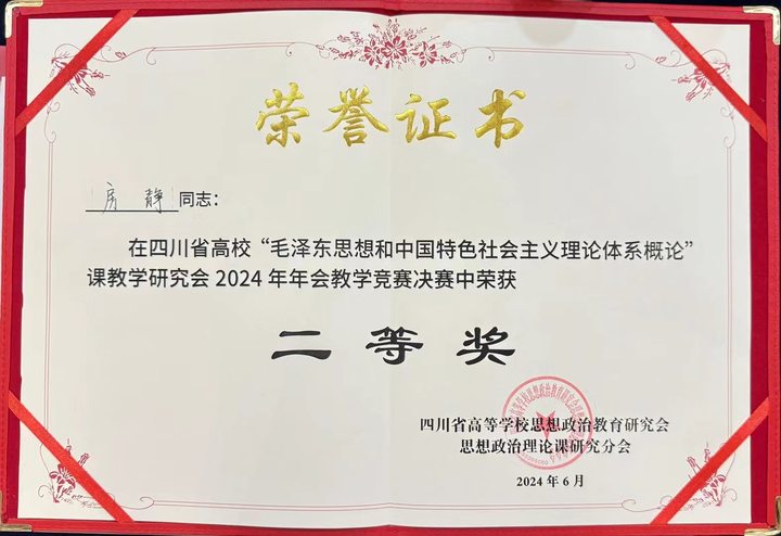 29日下午,公司教师房静以“实事求是难在何处”为题参加了此次教学竞赛。会前,四川省高校“毛泽东思想和中国特色社会主义理论体系概论”教学研究会成立预审组,对40余份参赛作品进行评审打分,房静老师成功进入决赛并最终在竞赛中以优异的成绩荣获二等奖。