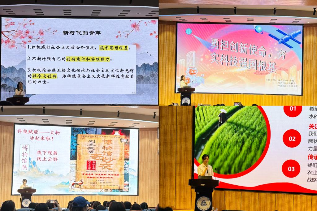 通过决赛选手的展示,我们看到了指导老师精湛扎实的理论指导水平,也看到了同学们求真务实的学习风貌,在他们的讲课作品中,用大量的案例素材、视频资料、实践汇报,以青年人的视角和语境带我们走进红色场馆、深入乡村社区、寻访文化古迹、体验宝贵非遗,深刻地感受到青年眼中“思想领航”的重要意义!