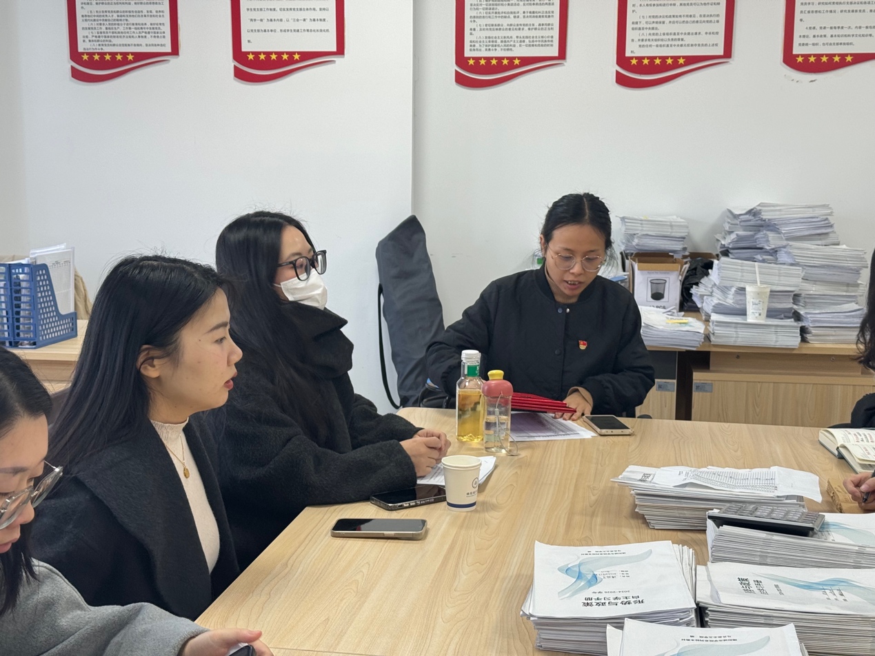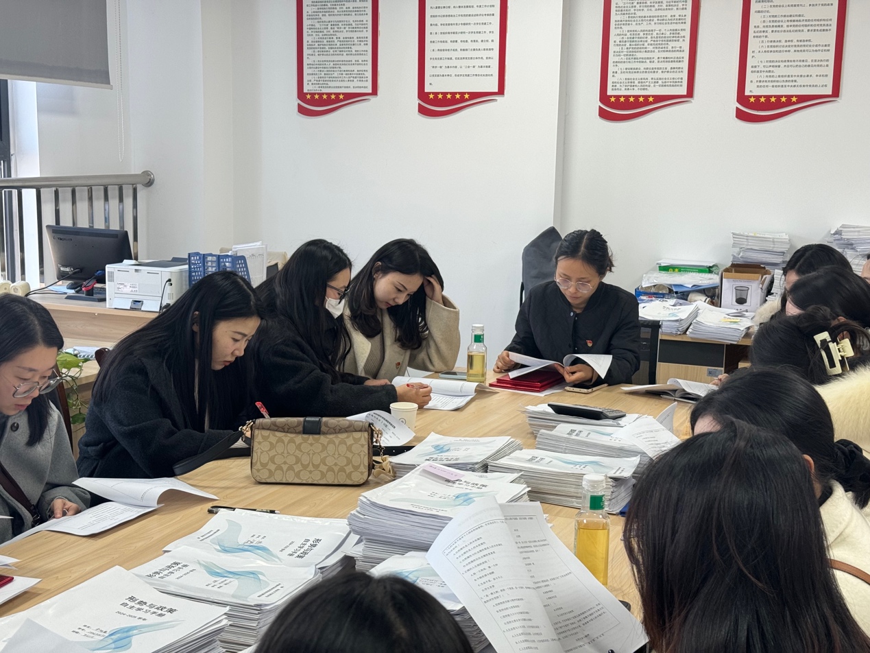 随后,教研室副主任冯韵带领各位老师对期末试卷进行了详细的核对与讨论。她指出,试卷的内容难易程度需适中,既要考查员工的基础知识掌握情况,又要检验其分析问题和解决问题的能力。同时,试卷的形式规格也应符合高校思政课的考试标准,确保细节准确无误。在冯韵副主任的带领下,老师们对试卷中的每一道题目都进行了深入的剖析,就难易程度、题型分布等方面进行了热烈的讨论。