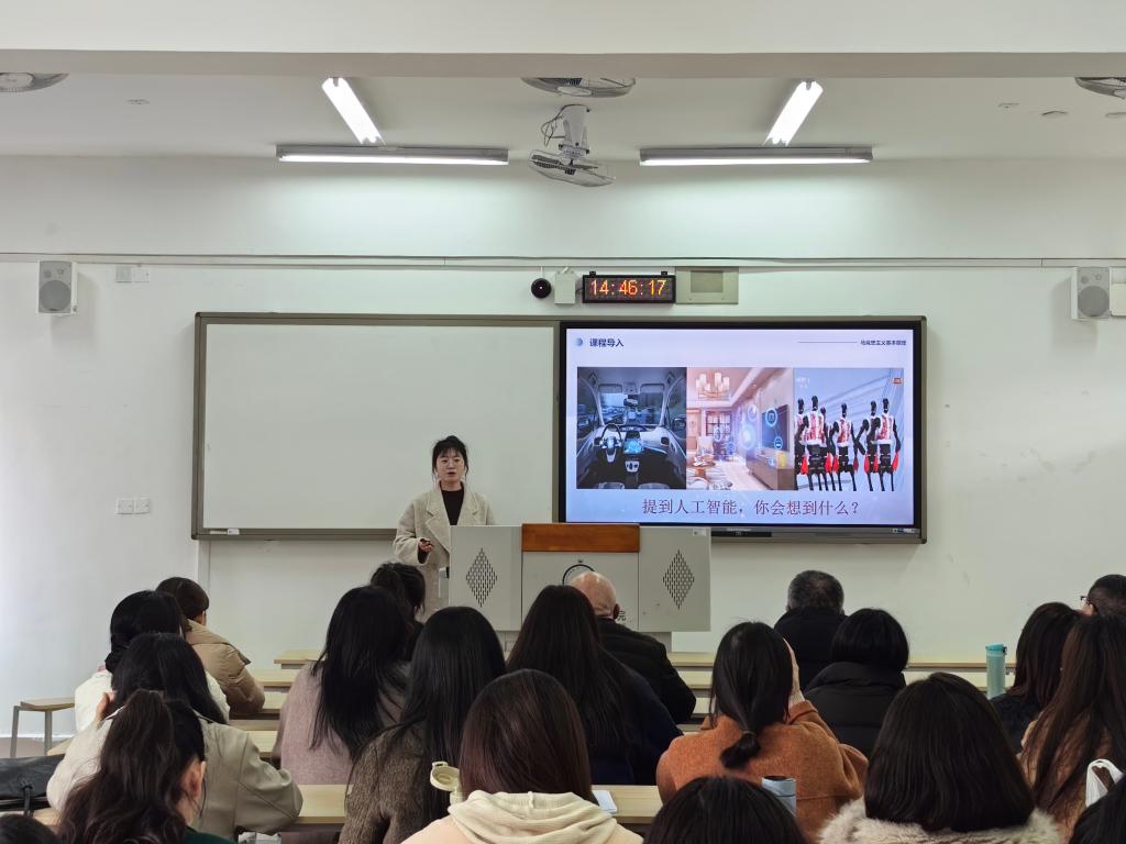 赛场上,教师们凭借独具匠心的教学设计和精彩纷呈的课堂讲解各展风采,展开激烈角逐。其中,彭雅丽老师别出心裁,在《解码特区精神,续写春天的故事》课程中创新性地运用人工智能赋能教学,创设情境,让案例图片“活起来”的教学方法令与会老师赞不绝口;郭丽老师在《人机“共舞”—如何看待人类意识与人工智能的交流互动?》课程中借助AI机器人与电影演员互动交流的方式深入浅出地阐明了复杂的哲学概念,充分展现了扎实的教学基本功和创新的教学理念。