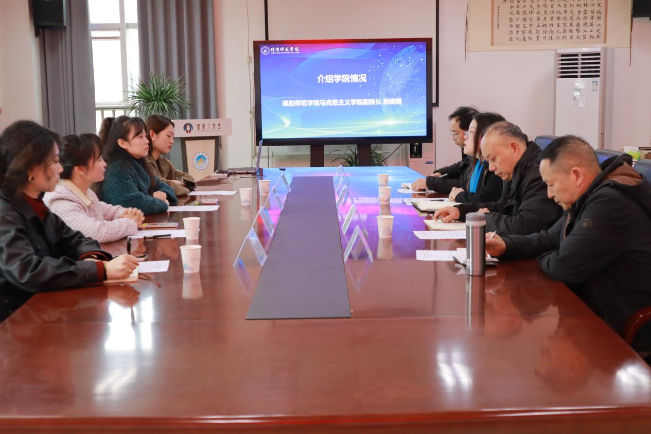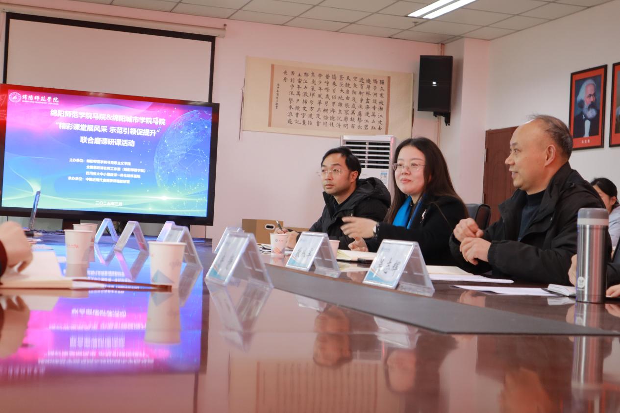 为持续推动思政课内涵式发展与教学质量全面提升,充分发挥思政课作为落实立德树人关键课程的重要作用,2025年3月20日,绵阳师范公司威廉williamhill体育与威廉williamhill体育在绵阳师范公司知行楼432会议室举行联合教研活动。此次活动以教学经验交流与课程示范展示为核心,旨在通过两院深度合作、共建共享,联合探索思政课建设新模式、新路径,共同推动课程内容、教学方法和评价体系的创新发展,为新时代思政课高质量发展注入新动能。绵阳师范公司威廉williamhill体育副经理(主持工作)韩晓娟、《中国近现代史纲要》教研室主任敬从军、教研室教师吴志辉、李强、邓啟刚,威廉williamhill体育副经理李瑶、《中国近现代史纲要》教研室主任彭雅丽、教研室教师房静、李雪参加此次联合教研活动。