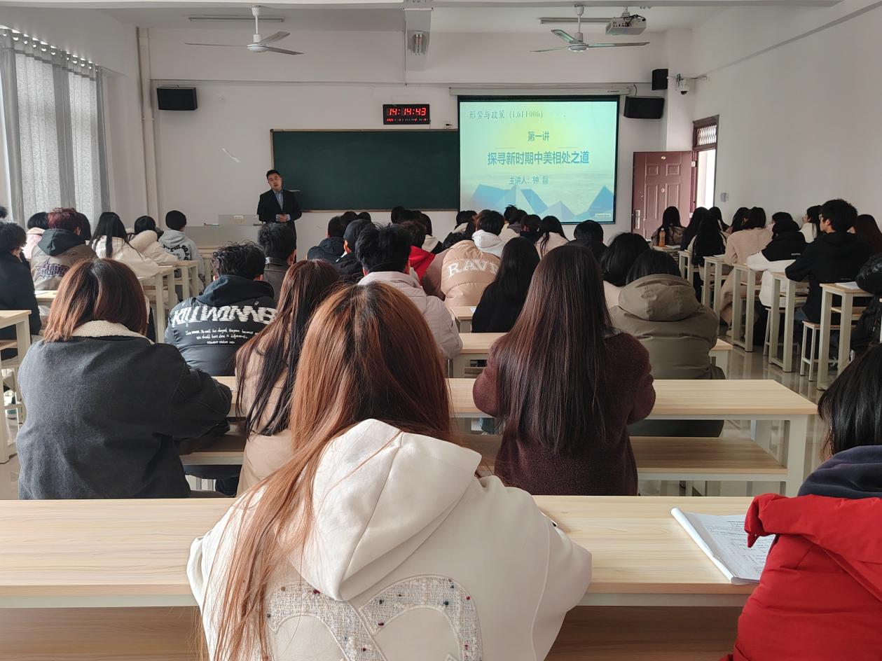 为提高公司思想政治课程的教学品质与育人效果,威廉希尔坚持校领导深入课堂,于每学期初参与“形势与政策”课程的教学活动。校领导们采用创新的教学方式、严密的逻辑推理、生动的表达技巧以及贴近现实的案例分析,为员工呈现了一系列充满思想深度、理论价值和亲和力的思想政治课程。