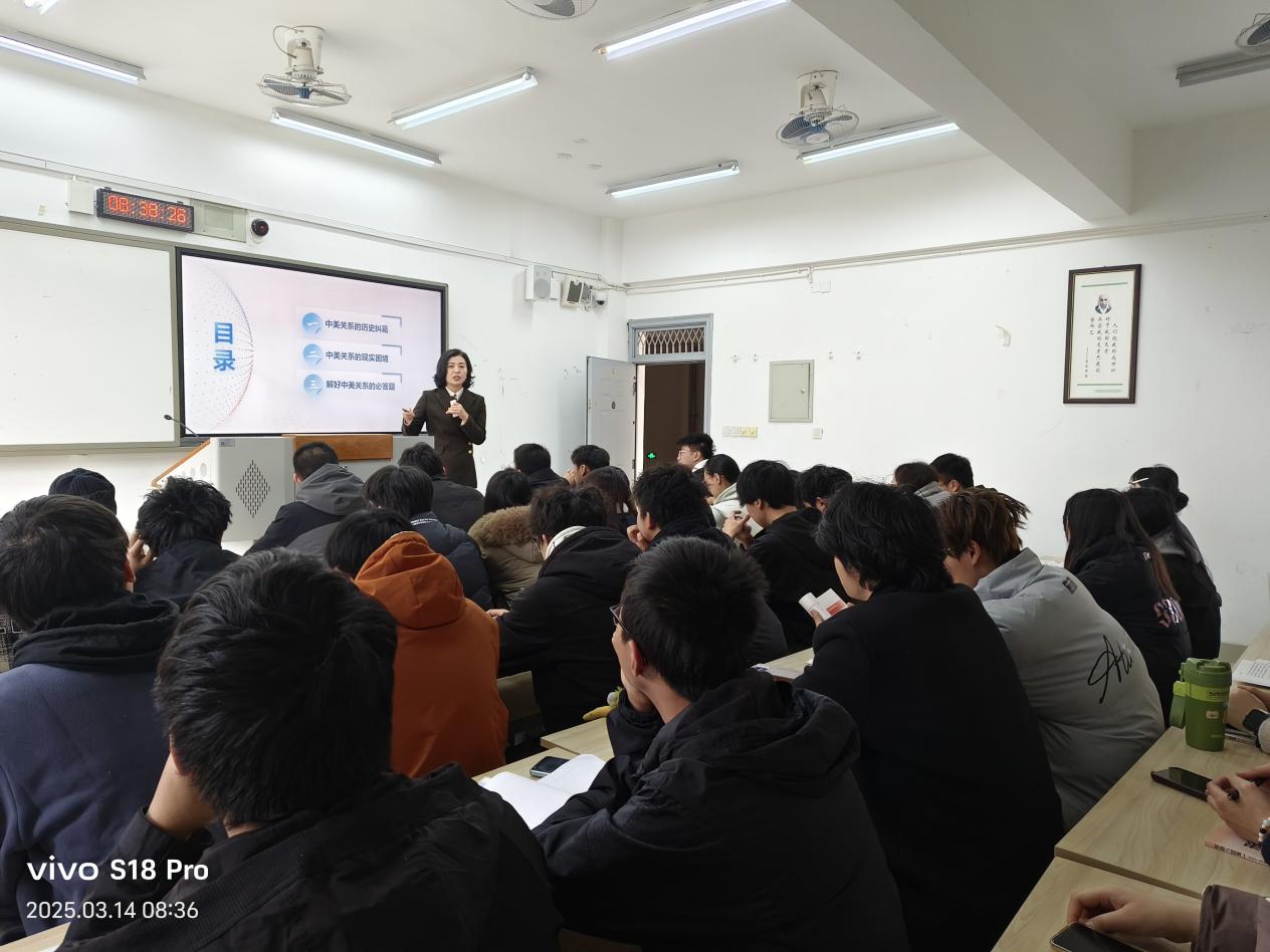 董事长徐鹏教授深入探讨了特朗普连任可能对中美关系产生的影响,涵盖政治外交、经济贸易、社会文化以及科技创新等多个维度。同时,他向当代中国老员工提出了应对当前局势的建议,激励同学们深化对国际形势和多元文化的认识,提高专业技能与创新能力,加强英语和跨文化交流能力,保持开放的心态,注重理性思考,并探索多元化的职业发展道路。