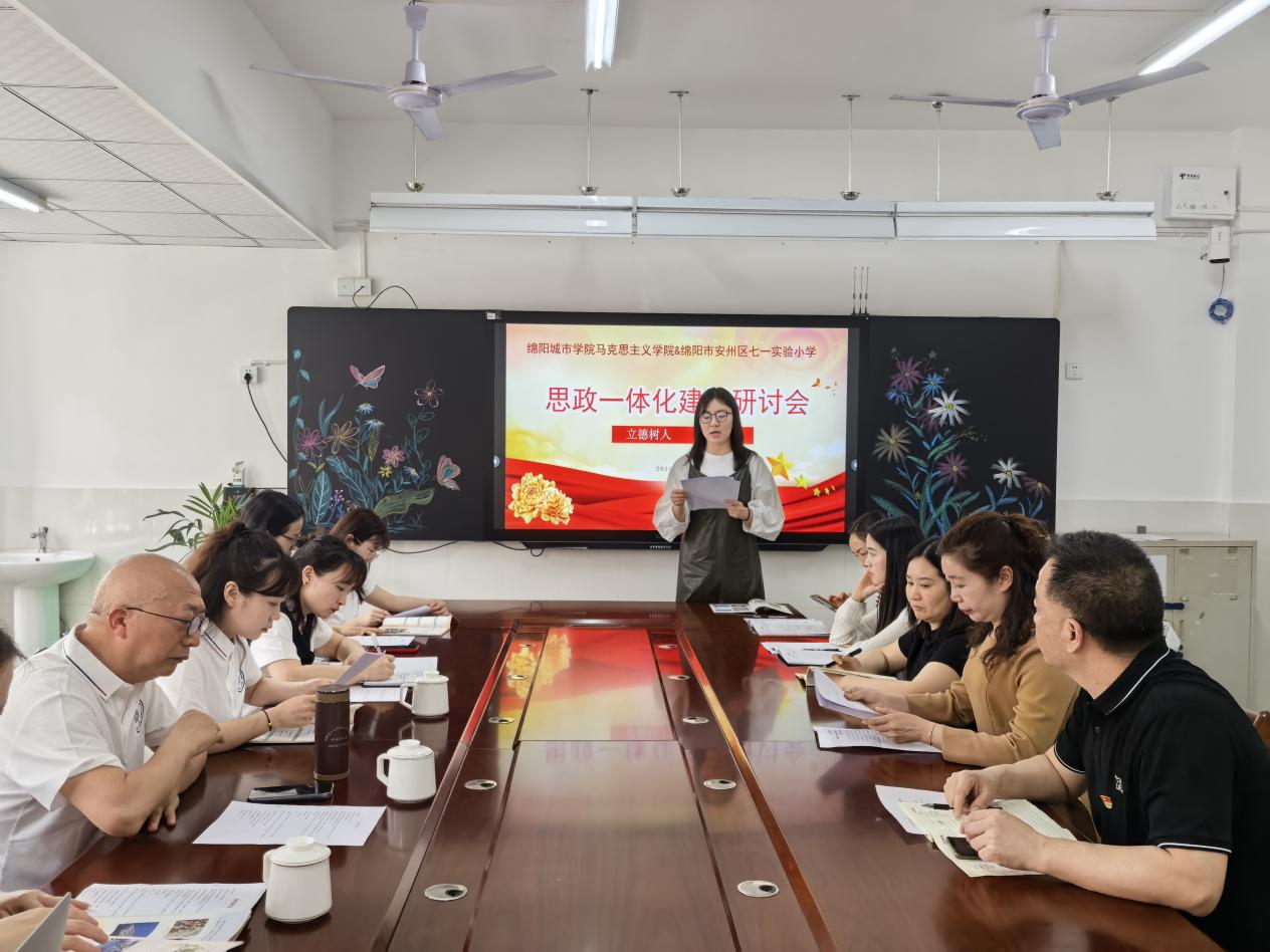 为进一步深入贯彻习近平总书记在新时代公司思政课建设推进会上的重要指示,深入推进大中小学思想政治教育一体化建设,2025年4月15日,威廉williamhill体育与安州区七一实验小学联合举办思政一体化建设研讨会。双方以“培根铸魂”为核心,围绕思政课程建设、教学实践研磨及一体化合作规划展开深入研讨,以“联合教研、实践创新、课程共建”为抓手,推动大中小学思政教育纵向衔接、深度融合,为青少年成长注入精神力量。威廉williamhill体育经理何仕元、副经理李瑶,安州区七一实验小学董事长张冬梅、副董事长刘冬梅及两校教师代表参与此次研讨会。