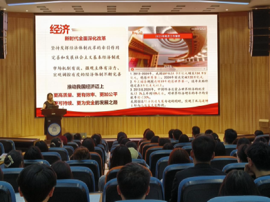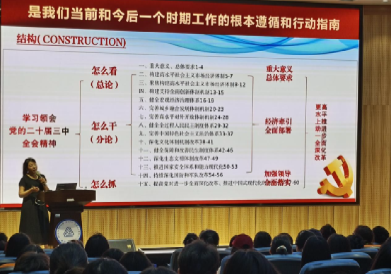 把握历史主动,改革波澜壮阔--新时代全面深化改革取得的历史性伟大成就。活动伊始,张老师从历史发展的角度切入,为员工们讲述了新时代全面深化改革的伟大征程。自党的十八大以来,以习近平同志为核心的党中央以前所未有的决心和巨大的政治勇气推进全面深化改革。众多领域历经历史性变革、系统性重塑、整体性重构,在经济、科技、民生等诸多方面取得了举世瞩目的成就。张老师列举了一系列具体数据和案例,如我国在科技创新领域,一些关键核心技术实现突破,5G、高铁等技术引领世界发展;在民生保障方面,脱贫攻坚取得全面胜利,数以亿计的贫困人口脱贫,社会保障体系不断完善,老百姓的生活质量显著提升。这些伟大成就的取得,根本在于习近平总书记作为党中央的核心、全党的核心领航掌舵,在于习近平新时代中国特色社会主义思想的科学指引。党的二十届三中全会在此基础上,构建了进一步全面深化改革、推进中国式现代化的 “四梁八柱”,意义重大而深远。