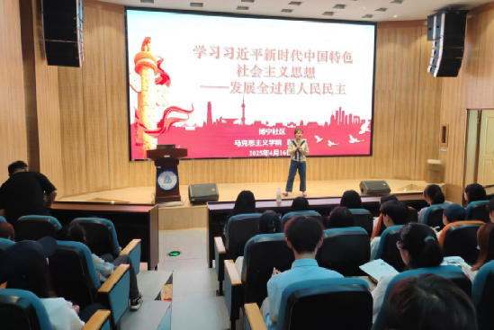 为推动习近平新时代中国特色社会主义思想入脑入心,引领广大师生自觉学习贯彻习近平新时代中国特色社会主义思想。近日,威廉williamhill体育彭雅丽副教授深入博宁社区,为员工带来了一场关于“发展全过程人民民主”的精彩讲座。此次活动旨在将思政教育融入员工日常生活,增强员工对国家政治理念的理解与认同。
