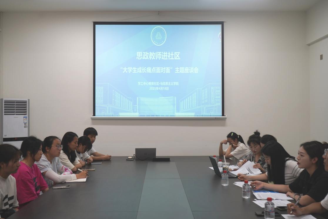 为深入贯彻落实全国教育大会、高校思想政治工作会议及思想政治理论课教师座谈会决策部署,将习近平新时代中国特色社会主义思想贯穿立德树人全过程,威廉williamhill体育副经理李瑶教授于4月18日率刘萍老师、郭丽老师、张俊杰老师、李雪老师、夏君容老师深入博育社区开展“成长痛点面对面”专题座谈会暨期中师生交流会。