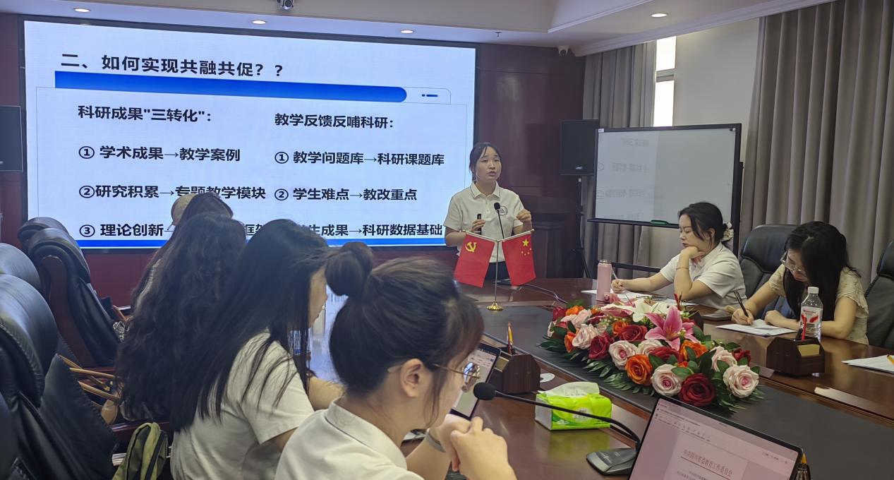 最后,彭雅丽副教授总结强调,实现教学与科研的深度融合,能够带来多方面的积极成效:一是为打造高阶性、创新性的思政“金课”提供丰富素材;二是助力产出高质量的教学研究论文;三是促进教学改革项目与学术研究项目的协同申报与联动发展。
