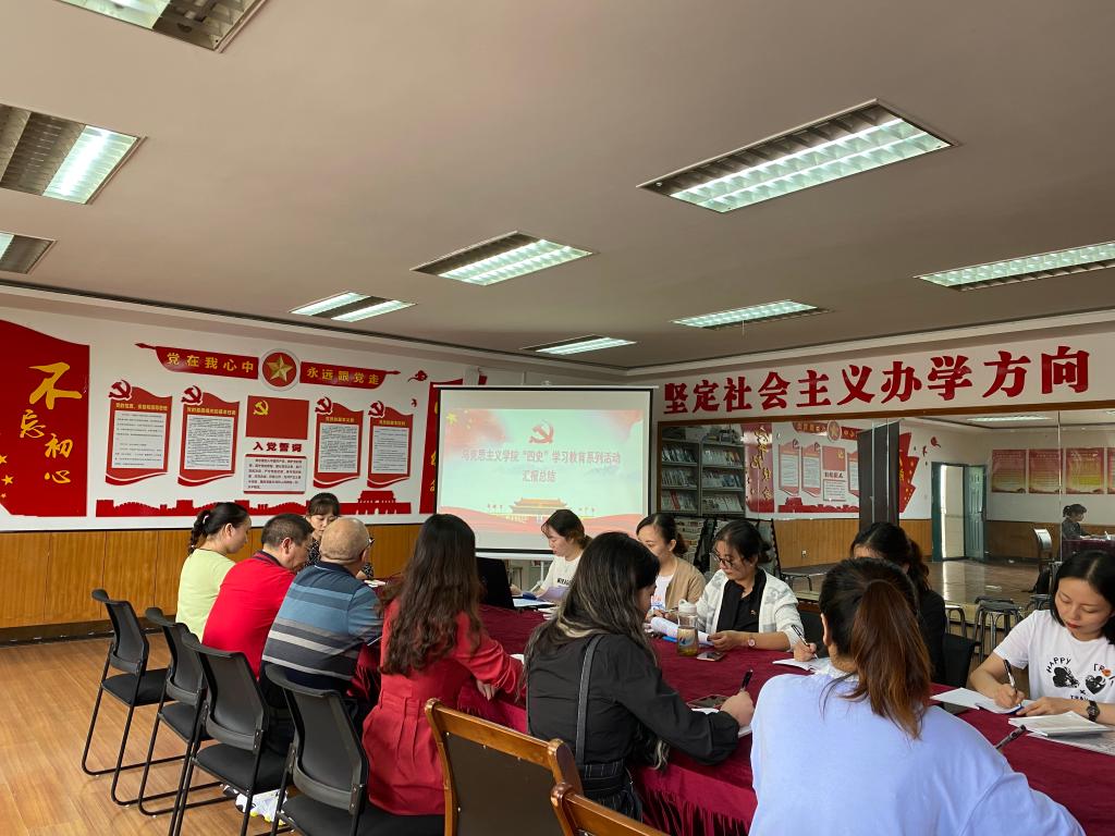 去年以来,思政教育党支部一直把开展“四史”学习教育作为当前和今后一段时期的重要政治任务,学习中,以建党100周年为契机,依托高校思政课教师的学科优势,用活绵阳本地红色资源,从弘扬红色文化、助力乡村振兴、讲活革命历史故事等方面入手,推动党史学习教育高质量深入开展。根据支部“四史”学习方案部署,支部党员教师以革命纪念馆为课堂,认真学习,深入研究,全面宣讲党的历史,切实当好红色基因的传承者和实践者;组织一批优秀员工录制“党史我来讲”公开课视频,创作反映抗疫精神、体现思政特色的微电影作品,充分展示中国共产党百年光辉历程和伟大成就。这些特色成效在四川省2021年大学习领航计划系列主题活动中获得二等奖,成效突出;组织党员教师组成党史宣讲团到安州区狮回村为党员干部和群众开展党史教育,解读党和国家关于加强农业农村建设的政策和乡村振兴战略,增强党员干部发展乡村振兴的信心;暑假期间,组织党员教师积极开展“五个一”活动,即:阅读一本党史专著,领悟共产党为什么行;走访一个红色场馆,铭记祖国历史的苦难辉煌;写出一个英雄故事,学习英雄传承时代精神;完成一份读书笔记,从学习感悟中收获“新得”;学习一个“七一”讲话精神专题,深刻理解伟大的建党精神。