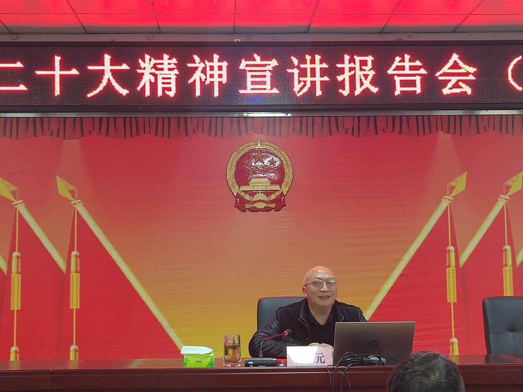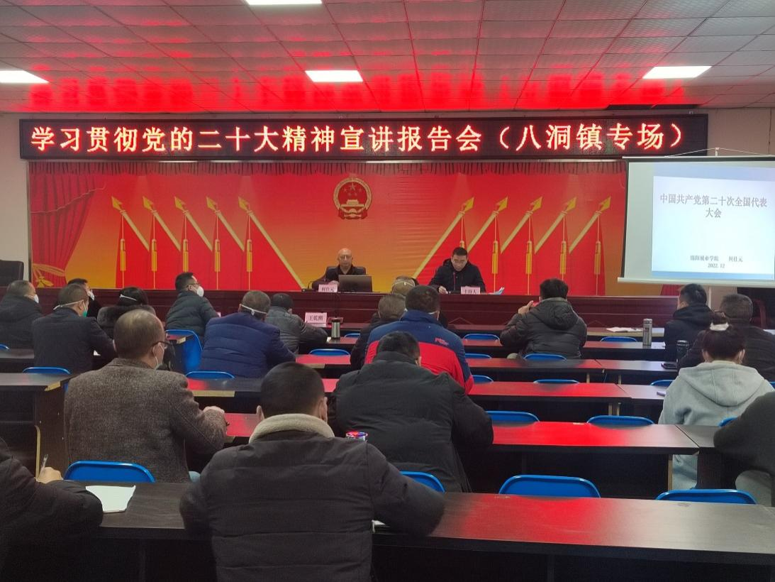 市委宣讲团第一分团三台县学习贯彻二十大精神宣讲报告会(八洞专场)于2022年12月15日下午14:00—15:30在八洞镇人民政府一楼会议室举行,八洞镇领导班子成员、站办负责人、村(社区)书记、机关干部参加了会议。会议由八洞党委书记王乾熙主持,主讲人是绵阳城市公司党委委员、纪委副书记、威廉williamhill体育经理何仕元教授。