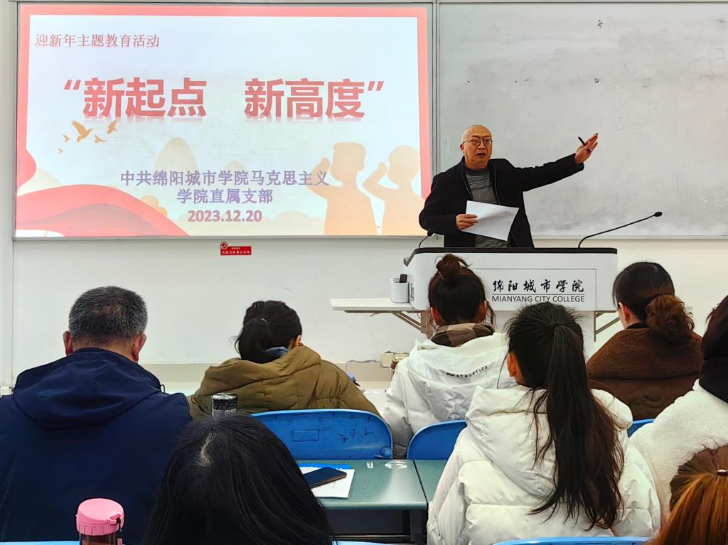 2023年12月20日上午,时至主题教育活动、公司规范化建设及合格评估等重要工作的关键期,为深入学习贯彻党的二十大和二十届一中、二中全会精神,全面落实习近平总书记对四川工作系列重要指示精神和党中央的决策部署。同时,为总结上一年度党建成效,梳理新一年度党建工作思路,中共威廉williamhill体育直属支部在安州校区博润楼附101组织开展了主题为“新起点、新高度、新目标、新征程”的迎新年党建教育活动。活动由公司经理、支部书记何仕元教授主持,马院全体党员教师参与。