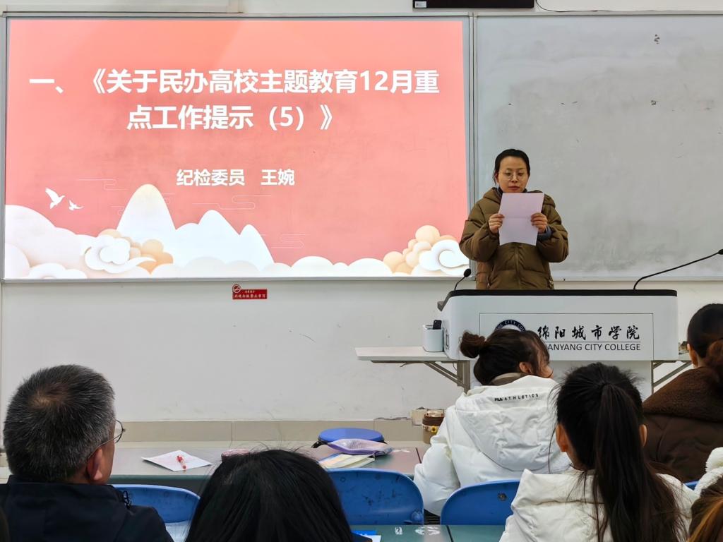 活动中,支部纪检委员王婉副教授组织与会人员认真学习、讨论了《关于民办高校主题教育12月重点工作提示(5)》,强调了公司将继续推进主题教育学习活动走实走深,努力在“以学铸魂,以学增智、以学正风、以学促干”方面取得实效。