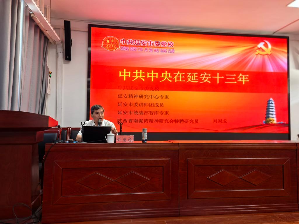 随后,延安市委党校刘国成教授为大家带来了一场精彩的专题教学——党中央在延安十三年。刘教授引经据典,声情并茂,让教师们仿佛穿越时空,重温了那段波澜壮阔的岁月。