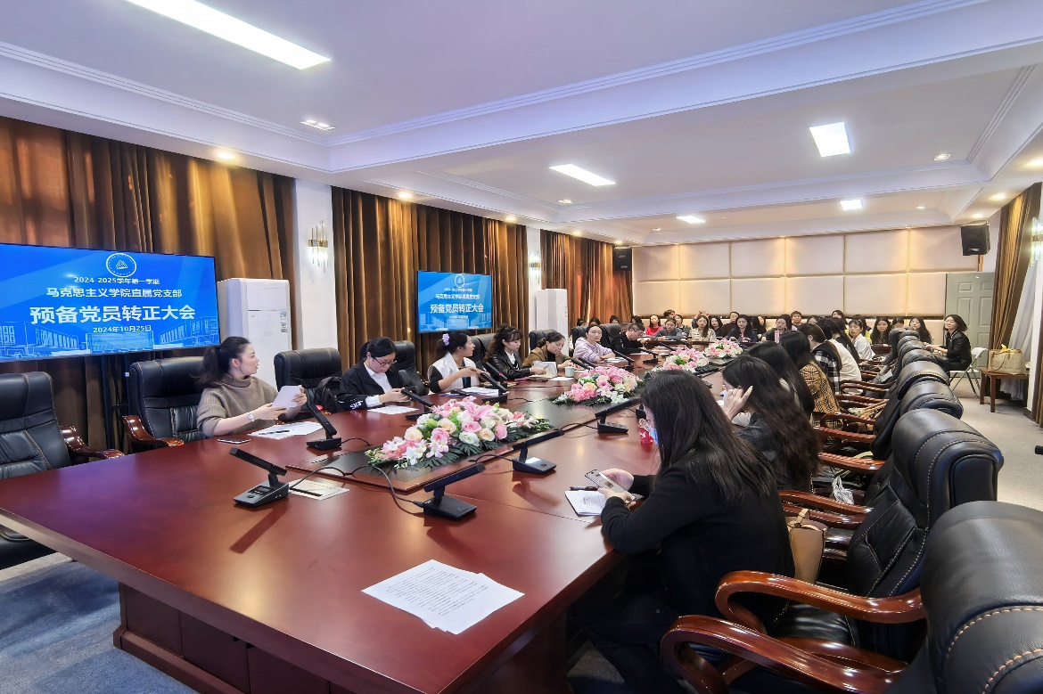 2024年10月25日,威廉williamhill体育直属党支部召开了预备党员转正大会。此次大会旨在审议吴思繁、徐亚玲、陈方涛三位同志的预备党员转正申请。党支部全体党员参加了此次会议,会议由支部委员张美艳主持。