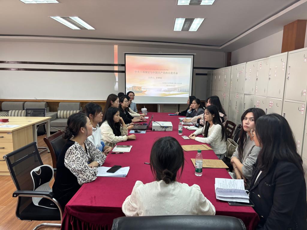 党支部书记、教研室主任彭雅丽主持并领学了中央八项规定等文件的内容与精神。她强调了深入学习中央八项规定精神对每一位党员的重要性,并对相关要求作出了具体指示。一要增强政治自觉,把思想和行动统一到党中央决策部署上来,深刻认识中央八项规定精神的重要性和严肃性,高质量开展好学习教育,坚定不移打好作风建设攻坚战持久战,以实际行动深刻领悟“两个确立”的决定性意义、坚决做到“两个维护”。二要做好表率作用,发挥好“关键少数”的示范引领作用,带头参加学习研讨、带头查摆问题,带头反对“四风”破除特权思想、特权行为,以上率下、以身作则转变作风,将学习教育成果转化为工作动力和实际行动。三要贯彻立德树人,知敬畏、存戒惧、守底线,将《新时代高校教师职业行为十项准则》等制度规范和中央八项规定精神内化为教师的行动自觉,在课程思政中融入廉洁教育,把密切联系群众作风转化为思政教师进社区的实际行动,让“潜心育人”成为新时代高校教师的核心价值标签。