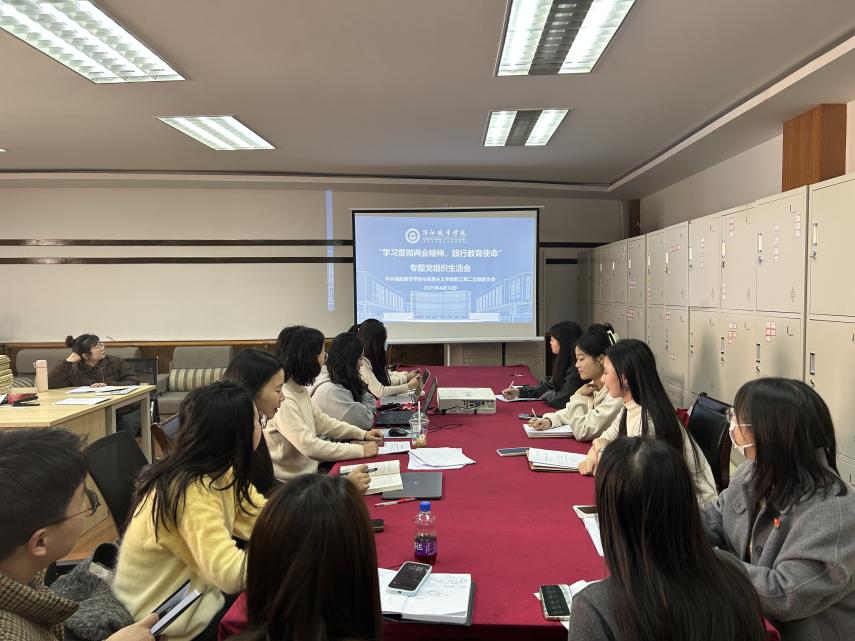 为深入学习贯彻全国两会精神,进一步统一思想、凝聚共识,激发广大教师党员的干事热情,为培养高素质人才贡献力量。2025年4月18日,威廉williamhill体育教工第二党支部成功举办了“学习贯彻两会精神,践行教育使命”专题党组织生活会,会议由支部书记王婉同志主持,全体党员参加。