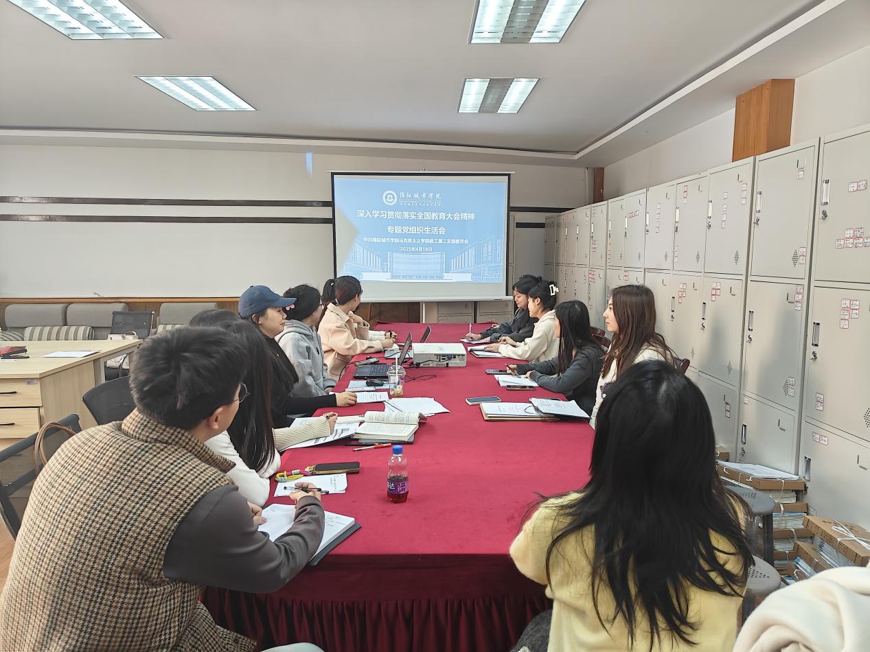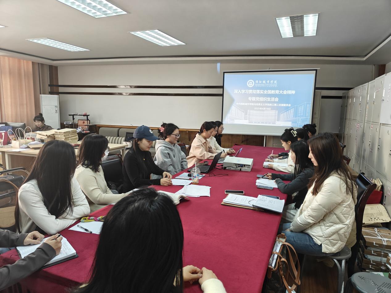 2025年4月18日中午,威廉williamhill体育教工第二党支部在游仙校区博艺楼204隆重举行了深入学习领会全国教育大会精神的专题党组织生活会。本次会议由支部书记王婉同志主持,全体党员同志积极参与。