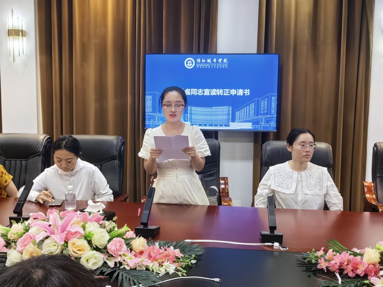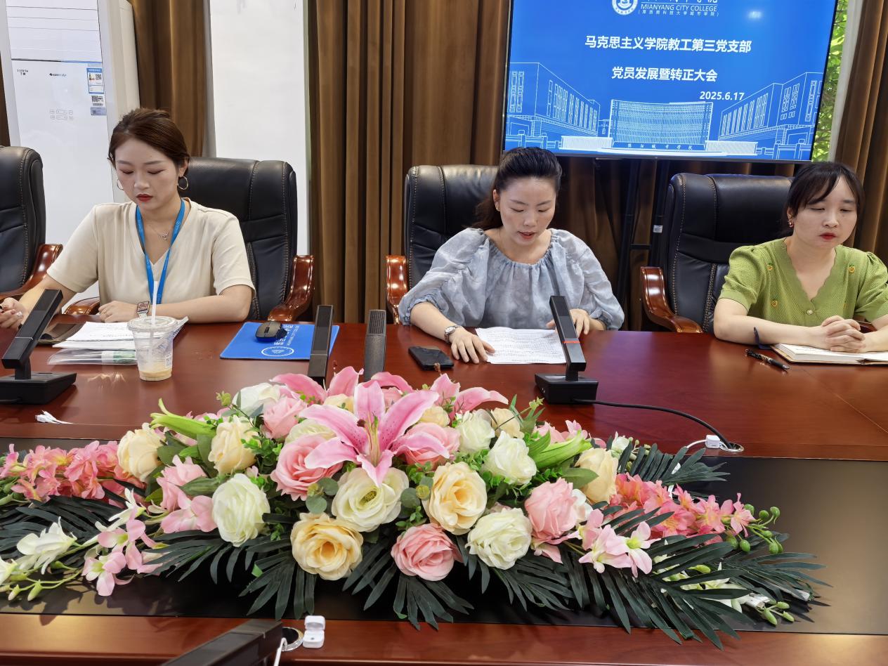2025年6月18日上午,威廉williamhill体育教工第三党支部在游仙校区图书馆二楼会议室召开了预备党员转正讨论大会,讨论邢瑞嘉同志的转正事宜。党支部全体党员参加会议,会议由组织委员寇壤主持。