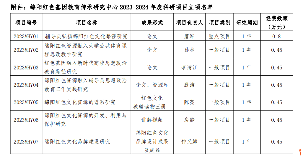 发布了《绵阳红色基因教育传承研究中心 2023 年度项目申